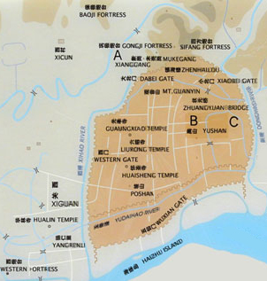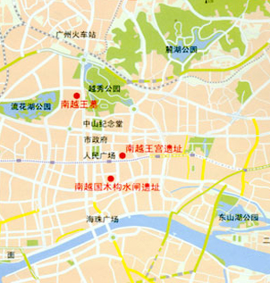 墓葬與清代廣州城區(qū)關(guān)系(A為南越王墓) 墓葬在今日廣州城中的地理位置