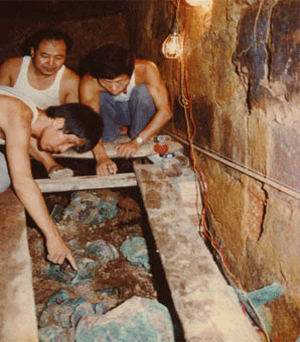 1983年7月4日,中國社會科學(xué)考古研究所、廣州市文物管理委員會及廣東省博物館聯(lián)合組成的“廣州象崗漢墓發(fā)掘隊(duì)”,由著名考古學(xué)家麥英豪先生任隊(duì)長。8月25日開始發(fā)掘,市主要領(lǐng)導(dǎo)都參加了動工儀式。發(fā)掘分兩個階段,第一階段發(fā)掘墓道和墓室前部的前室及東、西耳室,從起吊墓道填塞的大石開始。發(fā)掘以有“御庫”之稱的西耳室最為復(fù)雜,其隨葬品數(shù)量大、品類多,層層疊壓,為了不擾亂器物間的原有關(guān)系,完整地取回各種資料,考古隊(duì)采取了搭架懸空發(fā)掘的方法。第二階段開始發(fā)掘墓室的后半部分,前室通往主棺室的第二道石門與石墻封閉得很嚴(yán),門的銅環(huán)、銅臼早已與軸銹在一起,只能將門下挖一條坑道,把門下沉后才打開。覆蓋在地面表層的泥土和石塊,使進(jìn)入主棺室的發(fā)掘者一時還難解墓主之謎,便耐心地用小平頭鏟和竹簽細(xì)細(xì)地清理,發(fā)現(xiàn)墓主身著絲縷玉衣,身上置有“帝印”、“泰子”金印和“趙眜“名章。據(jù)史書記載,只有南越國第一代王趙佗和第二代王趙胡曾僭越稱帝,趙眜何許人也?直到9月22日晚在玉衣上胸部發(fā)現(xiàn) “文帝行璽”龍鈕金印時,人們才恍然大悟,原來墓主趙眜就是南越國第二代王自稱文帝的趙胡。興奮的隊(duì)員繼續(xù)發(fā)掘,9月28日用“竹簽插取套裝“的辦法成功地完成了玉衣的整取。隨后清理了東、西側(cè)室和后藏室,于10月6日上午,最后一批珍寶運(yùn)出墓室,歷時43天的發(fā)掘圓滿結(jié)束。這次發(fā)出土了1000所件(套)珍貴文物,令世人震驚。這次發(fā)掘是中央和地方聯(lián)手進(jìn)行的一次科學(xué)而成功的發(fā)掘,運(yùn)用了當(dāng)時較先進(jìn)的技術(shù)手段,為文物的保護(hù)和研究奠定了基礎(chǔ)。西漢南越王墓于1996年被國務(wù)院公布為全國重點(diǎn)文物保護(hù)單位。