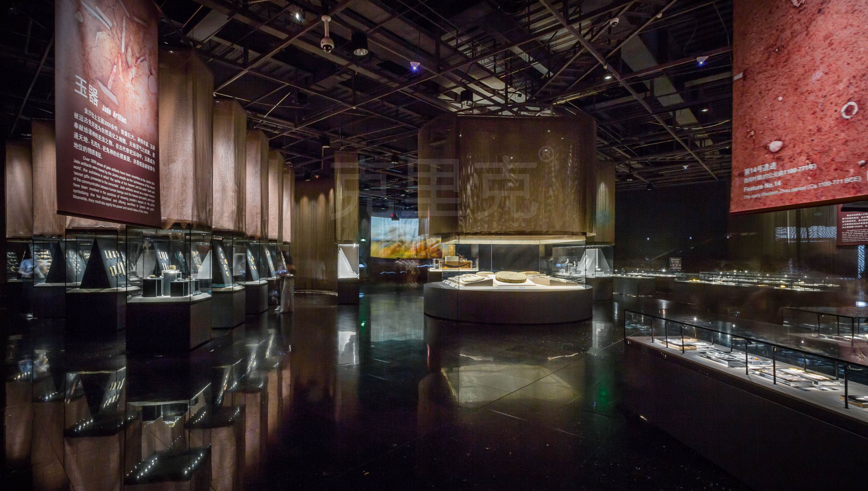 在交互式展陳設(shè)計(jì)過程中, 需要重視情境的制造,設(shè)計(jì)人員可結(jié)合多種空間設(shè)計(jì)方式來進(jìn)行場景與氛圍的營造。 在實(shí)際設(shè)計(jì)過程中, 可以采用動靜對比的方式。 設(shè)計(jì)人員可以將原本動態(tài)、 生動的場景直接轉(zhuǎn)化成靜態(tài)的場景, 通過靜態(tài)的場景來渲染意境。 這種鮮明的場景對比,可以讓參觀者獲得不同的體驗(yàn)感受, 并讓參觀者在寂靜的環(huán)境中對歷史進(jìn)行沉思。 例如, 在良渚遺址博物館中, 設(shè)計(jì)人員為了將良渚古國遺址充分地展現(xiàn)在參觀者的眼前,對良渚古國中人們的勞作、 生活進(jìn)行了全面的分析, 以相關(guān)文獻(xiàn)記載為支撐, 對良渚古國中人們的生活進(jìn)行了全面的模擬, 然后通過交互式展陳進(jìn)行展現(xiàn)。 參觀者在互動體驗(yàn)過程中, 仿佛置身于莫角山宏偉、 空曠的宮殿之中。 當(dāng)參觀者內(nèi)心產(chǎn)生巨大波瀾時(shí), 原本動態(tài)的環(huán)境被突然換成一個寂靜的空間, 巧妙地將動、 靜兩個場景融合起來, 形成鮮明的對比。 另外, 設(shè)計(jì)人員可以將真實(shí)遺跡與虛擬建筑進(jìn)行結(jié)合, 以此來構(gòu)成一個完整的整體。 通過這種方式, 可以為參觀者營造出良好的意境和氛圍, 在提升參觀者體驗(yàn)感受的同時(shí), 讓參觀者更深一步地認(rèn)識歷史文化,進(jìn)而將互動式展陳的效果發(fā)揮到極致。